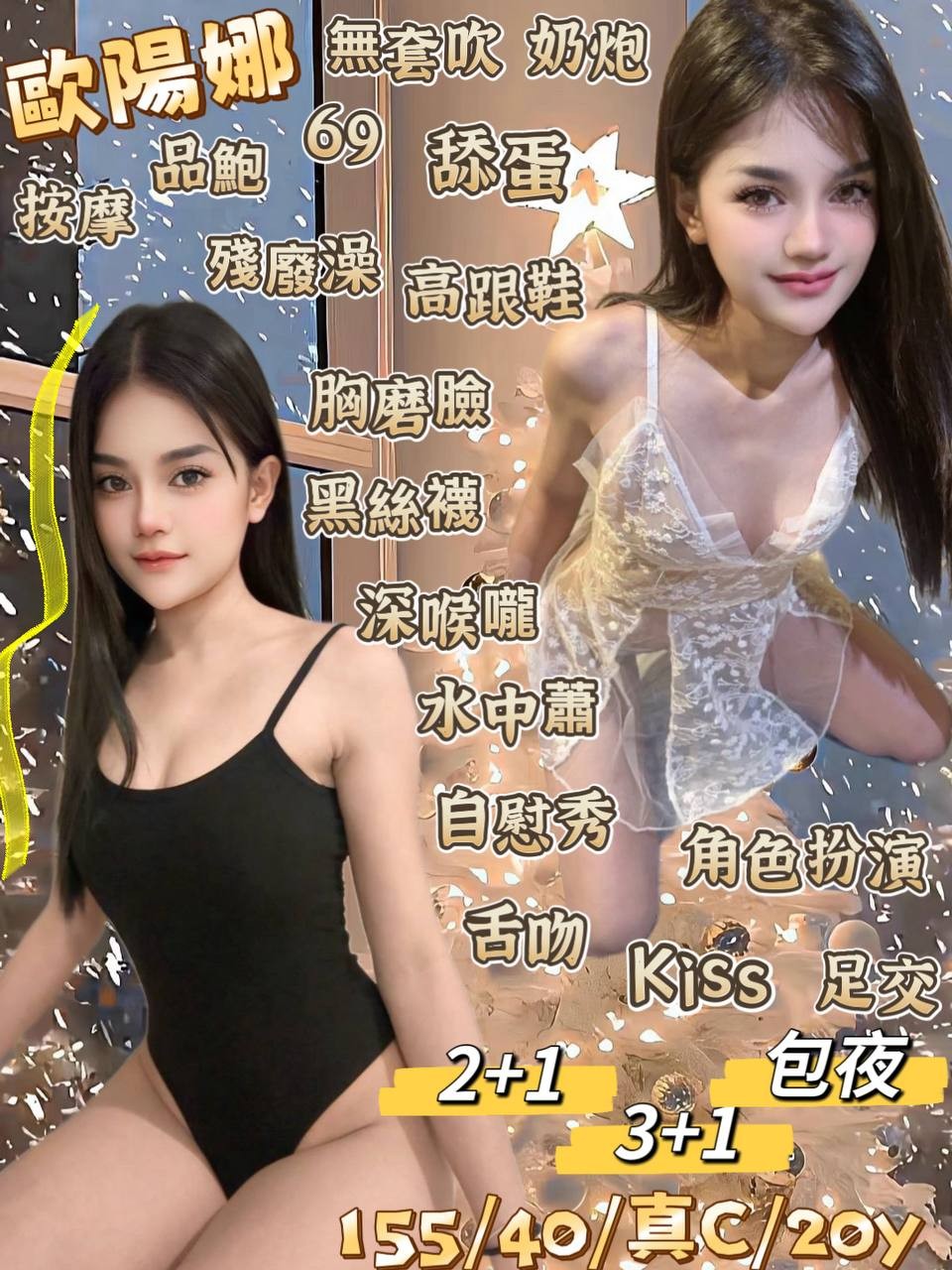 無套吹/奶泡/按摩/品鮑/69/親嘴/舔蛋/冰火/共浴/高跟鞋/胸膜臉/絲襪/🉑️水中蕭/🉑️自衛秀/🉑️毒龍/🉑️舌吻/🉑️角色扮演/🉑️口爆/🉑️足交/🉑️情趣用品/🉑️雙飛